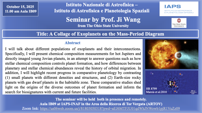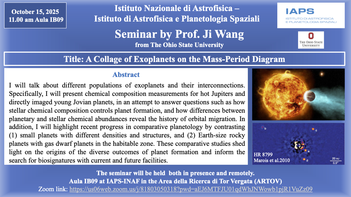 Abstract: I will talk about different populations of exoplanets and their interconnections. Specifically, I will present chemical composition measurements for hot Jupiters and directly imaged young Jovian planets, in an attempt to answer questions such as how stellar chemical composition controls planet formation, and how differences between planetary and stellar chemical abundances reveal the history of orbital migration. In addition, I will highlight recent progress in comparative planetology by contrasting (1) small planets with different densities and structures, and (2) Earth-size rocky planets with gas dwarf planets in the habitable zone. These comparative studies shed light on the origins of the diverse outcomes of planet formation and inform the search for biosignatures with current and future facilities.